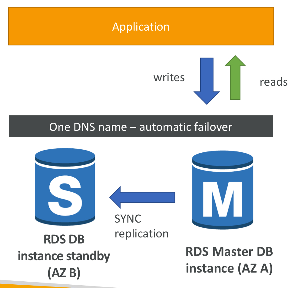 - Failover in case of loss of AZ, loss of network, instance or stroage failure